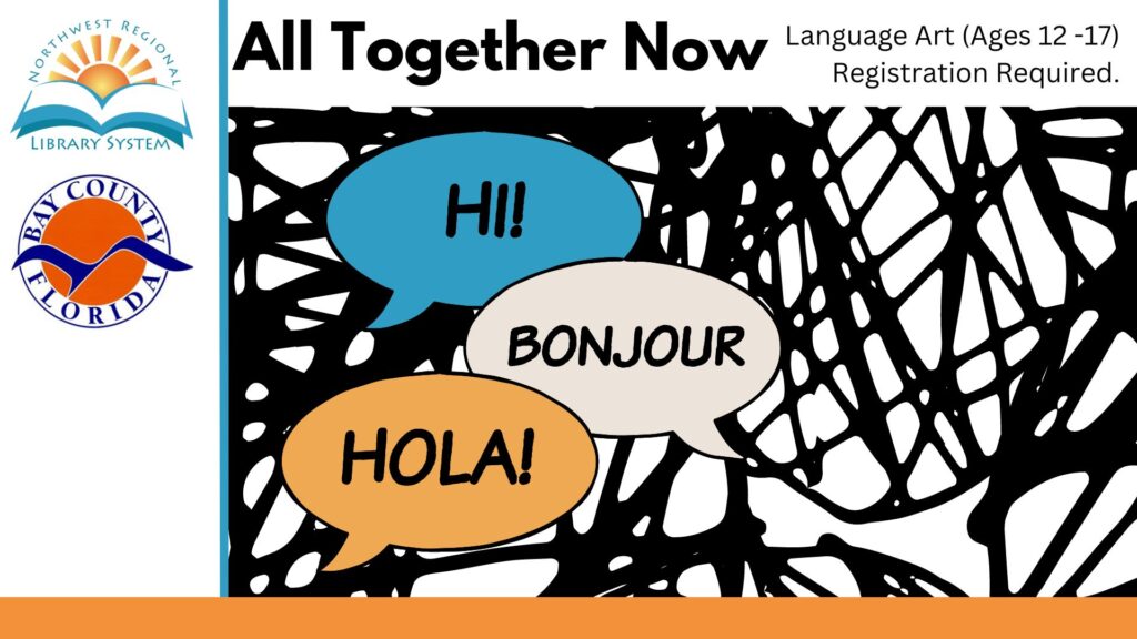 Bay County Public Library 898 W 11th St., Panama City, FL, United StatesCreate wall art using a word in another language. Program geared for ages 12 – 17. Registration required. Call 850-522-2118 to register.